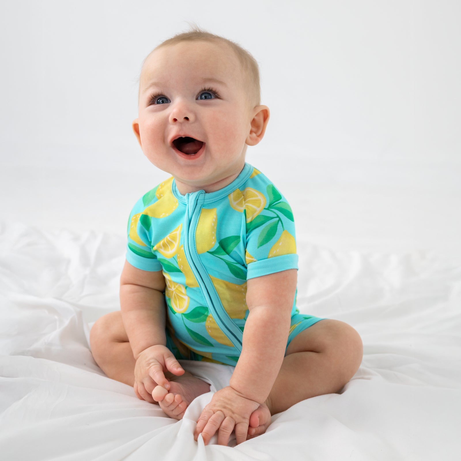 When life gives you lemons, snuggle up in them! The Sunny Citrus Shorty Zippy is as fresh as a summer breeze, featuring cheerful lemons on a bright blue background. Made from buttery soft Lunaluxe® Bamboo, it’s breathable and comforting for sweet dreams that never sour. With an easy double zipper, this one-piece is made for cozy nights, sunny mornings, and sweet sibling matching.