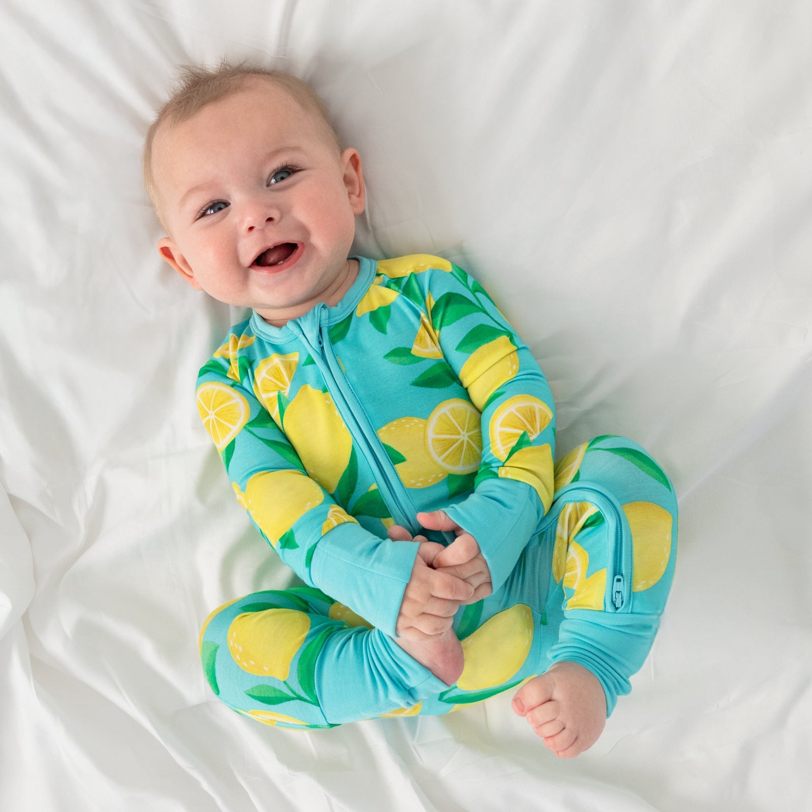 When life gives you lemons, snuggle up in them! The Sunny Citrus Zippy is as fresh as a summer breeze, featuring cheerful lemons on a bright blue background. Made from buttery soft Lunaluxe® Bamboo, it’s breathable and comforting for sweet dreams that never sour. With fold-over mittens, convertible foot cuffs, and an easy double zipper, this one-piece is made for cozy nights, sunny mornings, and sweet sibling matching.