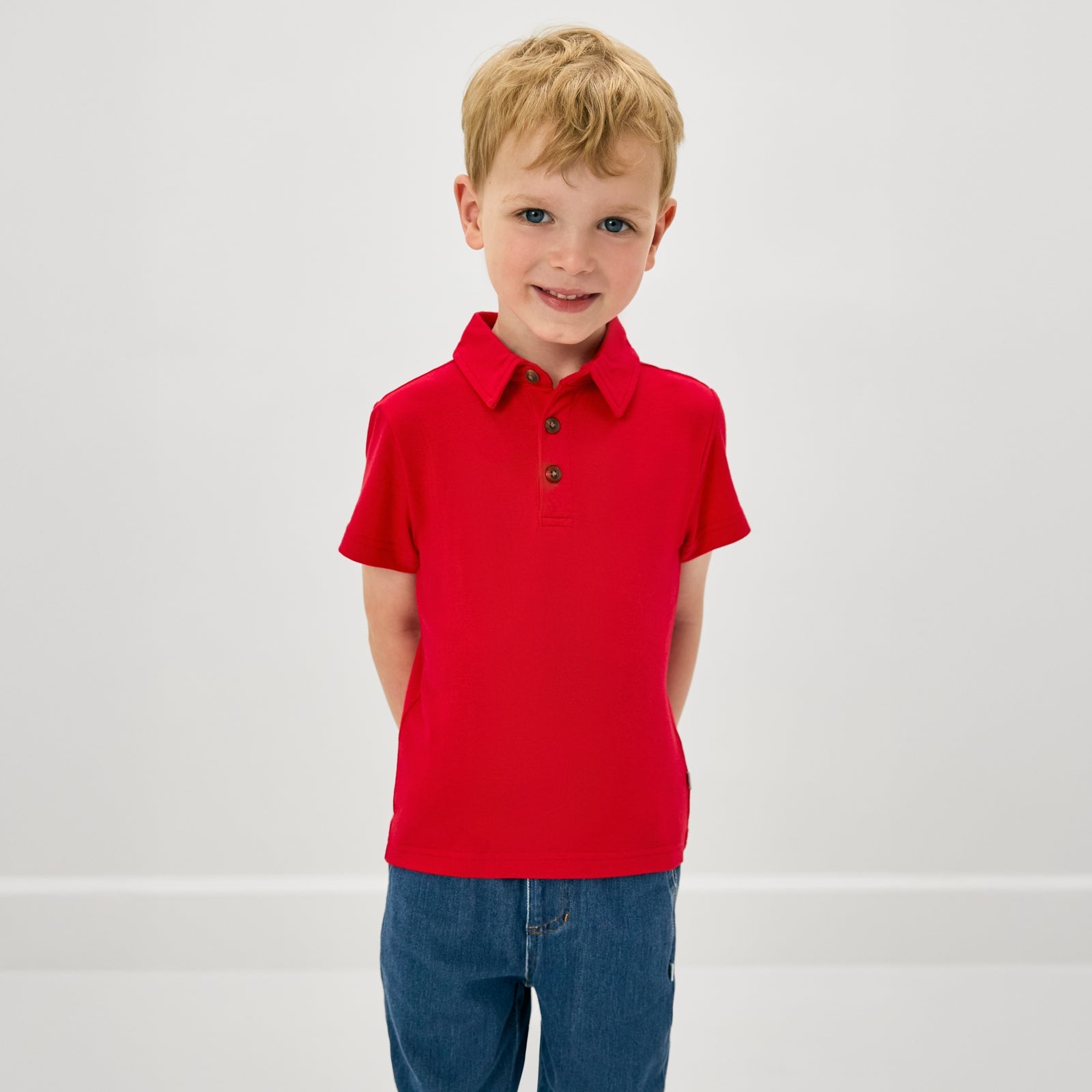 A collared classic! The Polo Shirt in Candy Red is made from Soluxe® Bamboo for a soft and durable feel. This polo shirt has a collared neckline, relaxed fit, and two buttons to take them from playtime to picture time. Perfect for school uniforms and pairing with their fave LS bottoms!