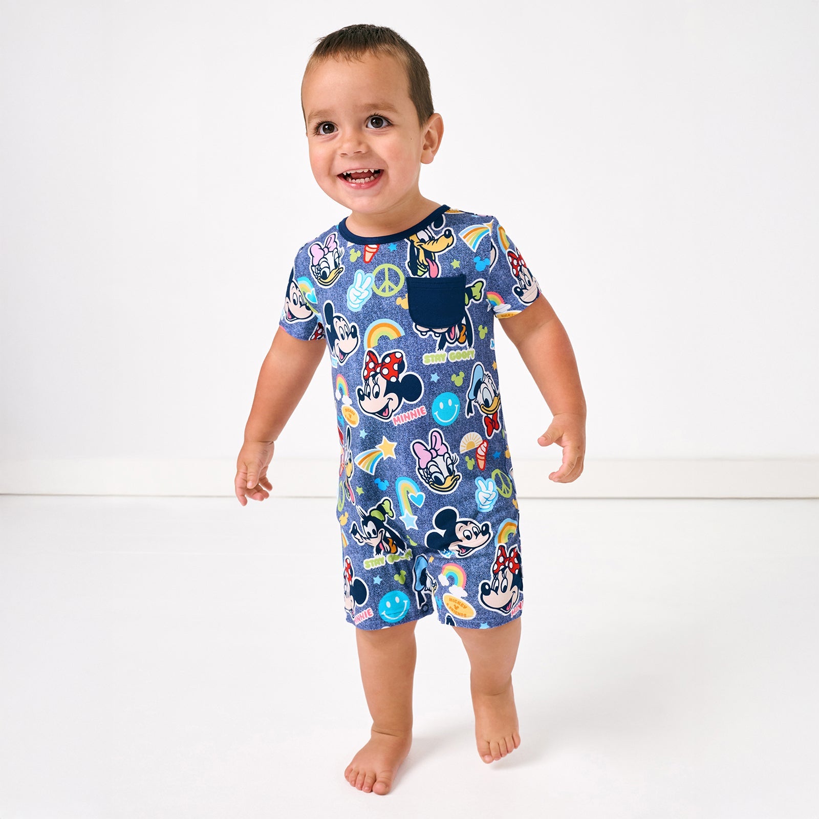 Get ready to Play all day the Disney way! The Disney Mickey’s Clubhouse baby boy romper is made with our super-soft and durable Soluxe® Bamboo, keeping your little one comfy as they crawl, walk, and explore. Hidden snaps make changes a breeze, while the front pocket is just perfect for storing their favorite stickers!