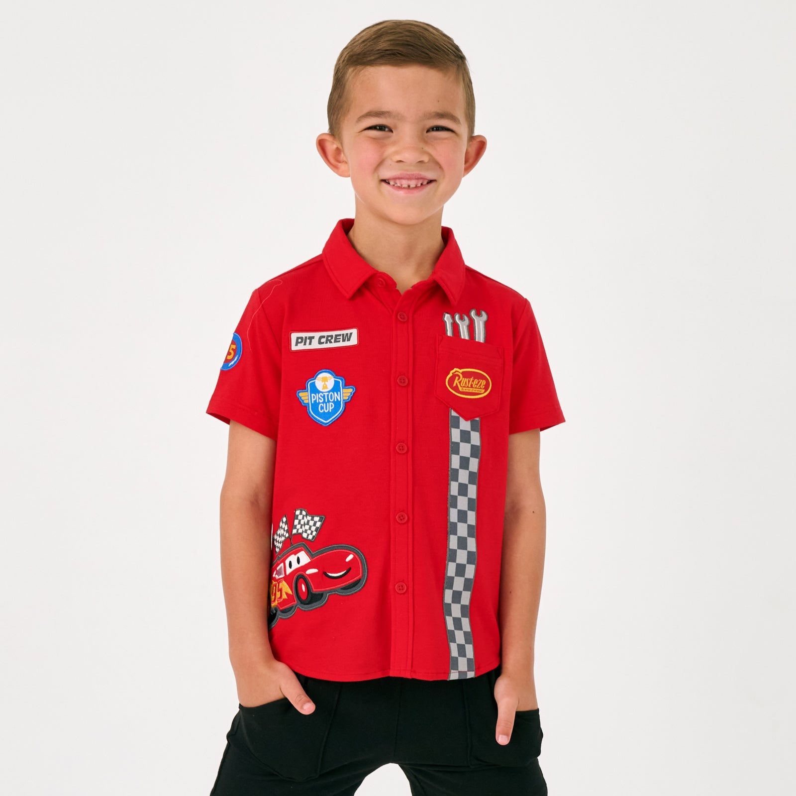 Start your engines! This Disney & Pixar Cars boys shirt is the ultimate pit crew look. The Piston Cup Button Down Shirt features embroidered graphics, pit crew patches, and the coolest tools. Made from durable Soluxe® Bamboo, the detailed embroidery makes this shirt championship-worthy. Perfect for special occasions and pairing with LS bottoms!