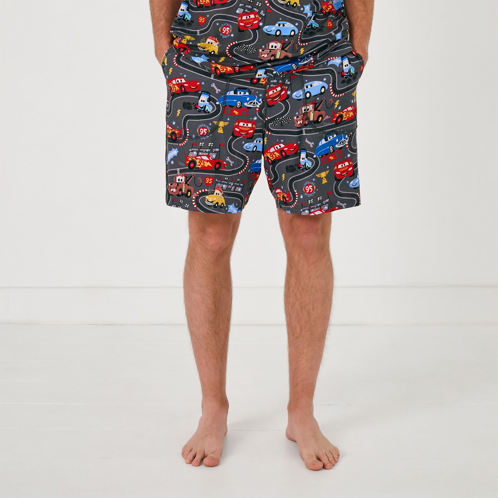 Rev up your relaxation! These Disney & Pixar Cars bamboo men's pajama shorts feature Pixar’s Lightning McQueen, Mater, Luigi, and more. Made from custom-milled Lunaluxe® Bamboo with deep side pockets for storing toy cars, a relaxed fit, and a wide elastic waist with a drawstring for the perfect fit. Whether you're racing to bedtime or cruising through weekend mornings, these are designed for comfort. Pair them with the matching top to complete the set!