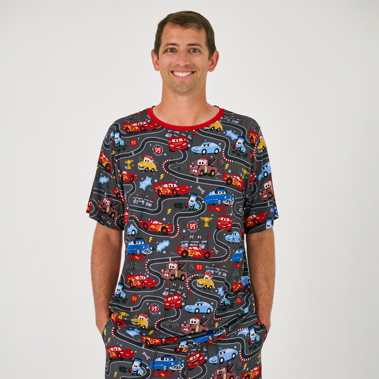 Rev up your relaxation! This Disney & Pixar Cars bamboo men's pajama top features Pixar’s Lightning McQueen, Mater, Luigi, and more. Made from custom-milled Lunaluxe® Bamboo with a relaxed fit and tagless interior. Whether you're racing to bedtime or cruising through weekend mornings, it’s designed for comfort. Pair them with the matching shorts to complete the set!