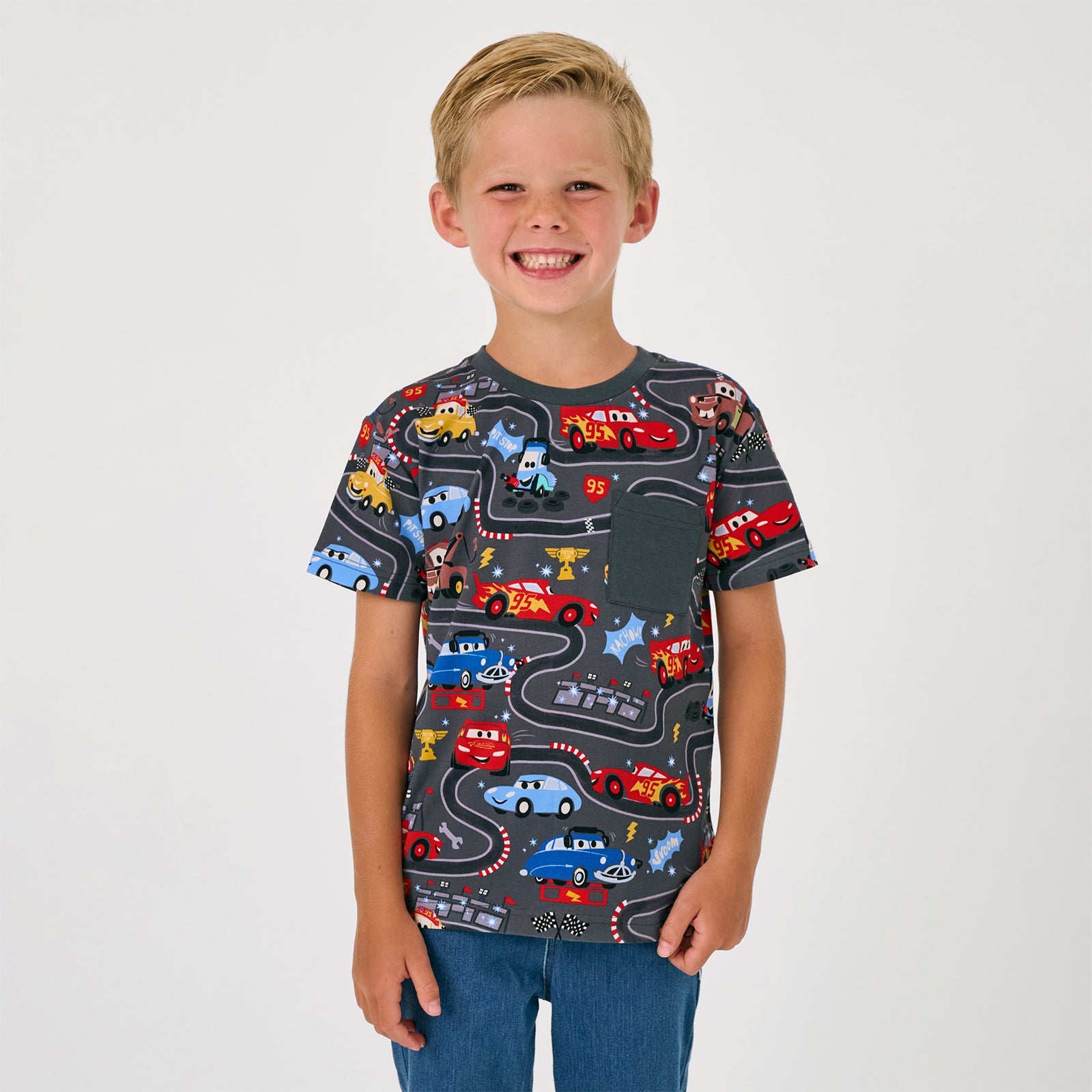 Your little racer is ready to roll! This Disney & Pixar Cars kids t shirt features their fave pit crew characters for speedy style. Made from durable Soluxe® Bamboo, the Piston Cup Relaxed Pocket Tee has room to move, making it race-ready and ideal for Play. Pair it with the matching hoodie for the ultimate pit crew look!