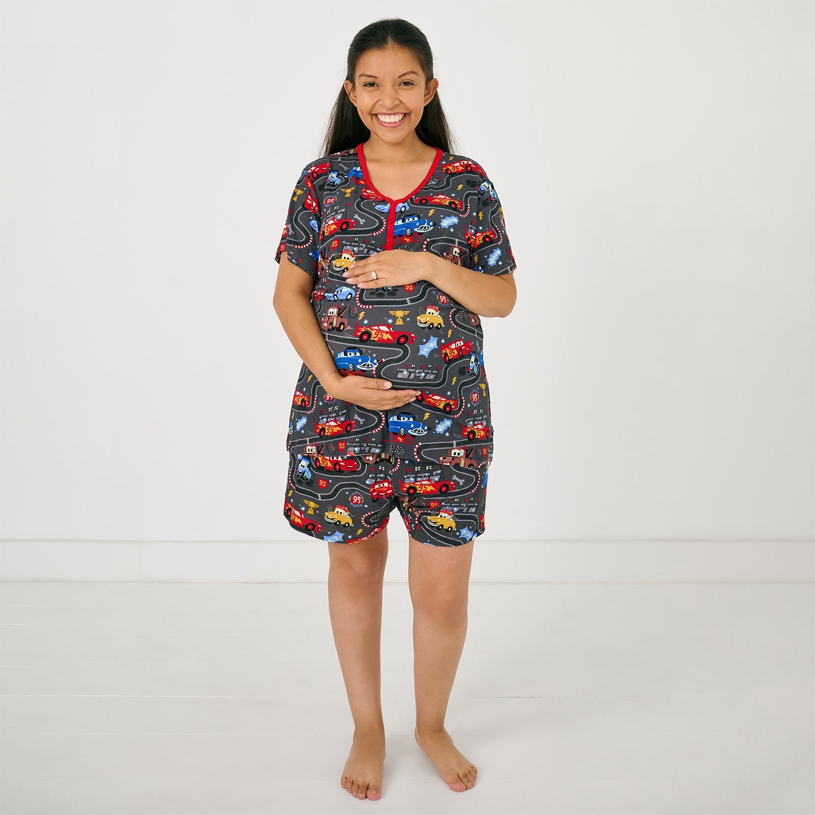Rev up your relaxation! These Disney & Pixar Cars bamboo women's pajama shorts feature Pixar’s Lightning McQueen, Mater, Luigi, and more. Made from custom-milled Lunaluxe® Bamboo with deep side pockets for mama must-haves, a flowy style, and a comfy drawstring waist for the perfect fit. Whether you're racing to bedtime or cruising through weekend mornings, these are designed for comfort. Pair them with the matching top to complete the set!