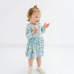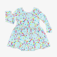 Bring extra sweetness to playful moments with our Friends Forever Twirl Dress! Designed with a hidden snap bodysuit for quick diaper changes, a full skirt for twirling fun, and a built-in bodysuit, this dress is a playdate essential. Made from soft and durable Soluxe® Bamboo, it’s gentle on sensitive skin. All charm, no fuss!