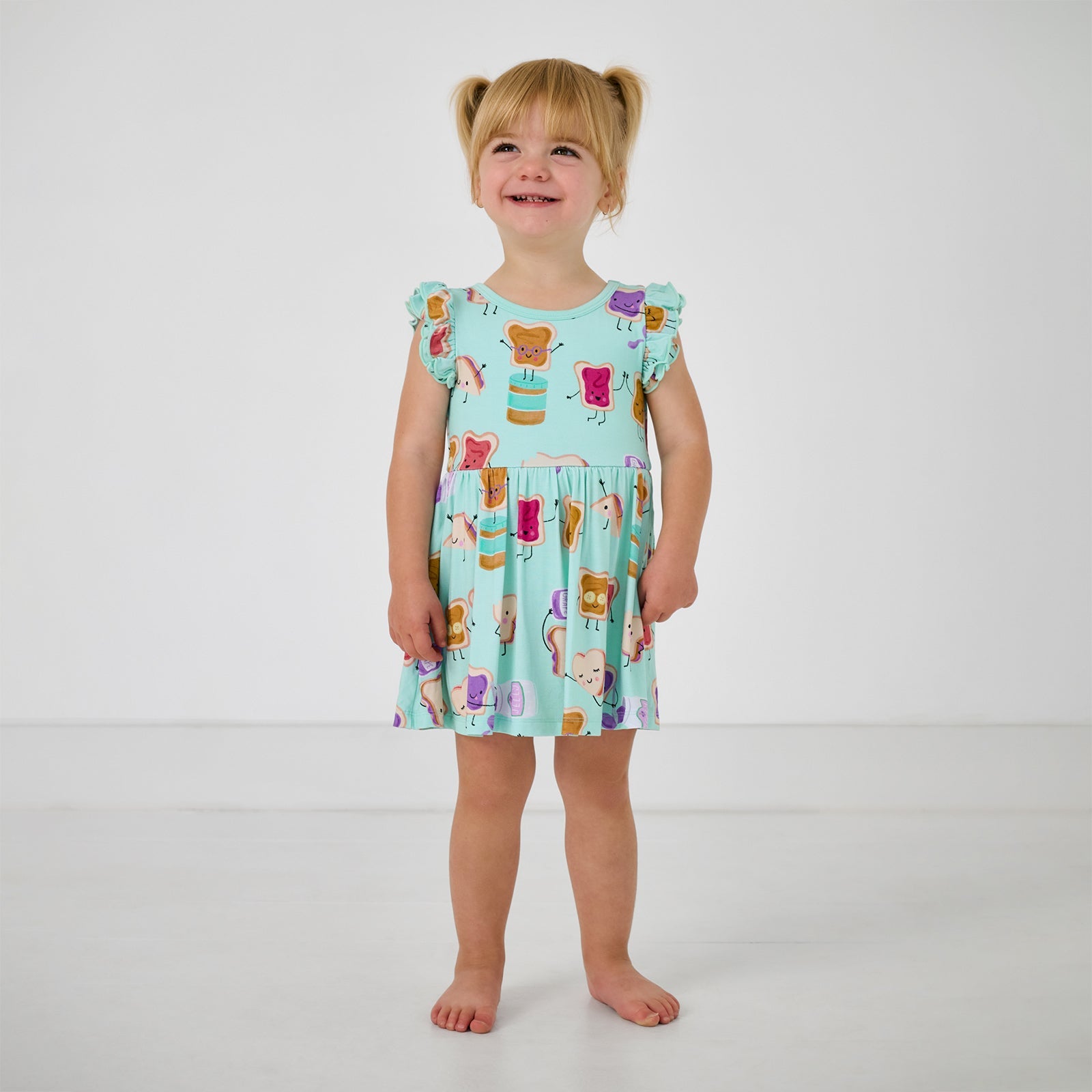 Twirl into lunchtime! This baby and toddler dress features the sweetest spreads and breads. Made from super soft and durable Soluxe® Bamboo, it’s got flutter sleeves, a twirl skirt, and a hidden snappable bodysuit for easy changes. The flutter details make every day feel magical. Perfect for special occasions and matching with best buds!
