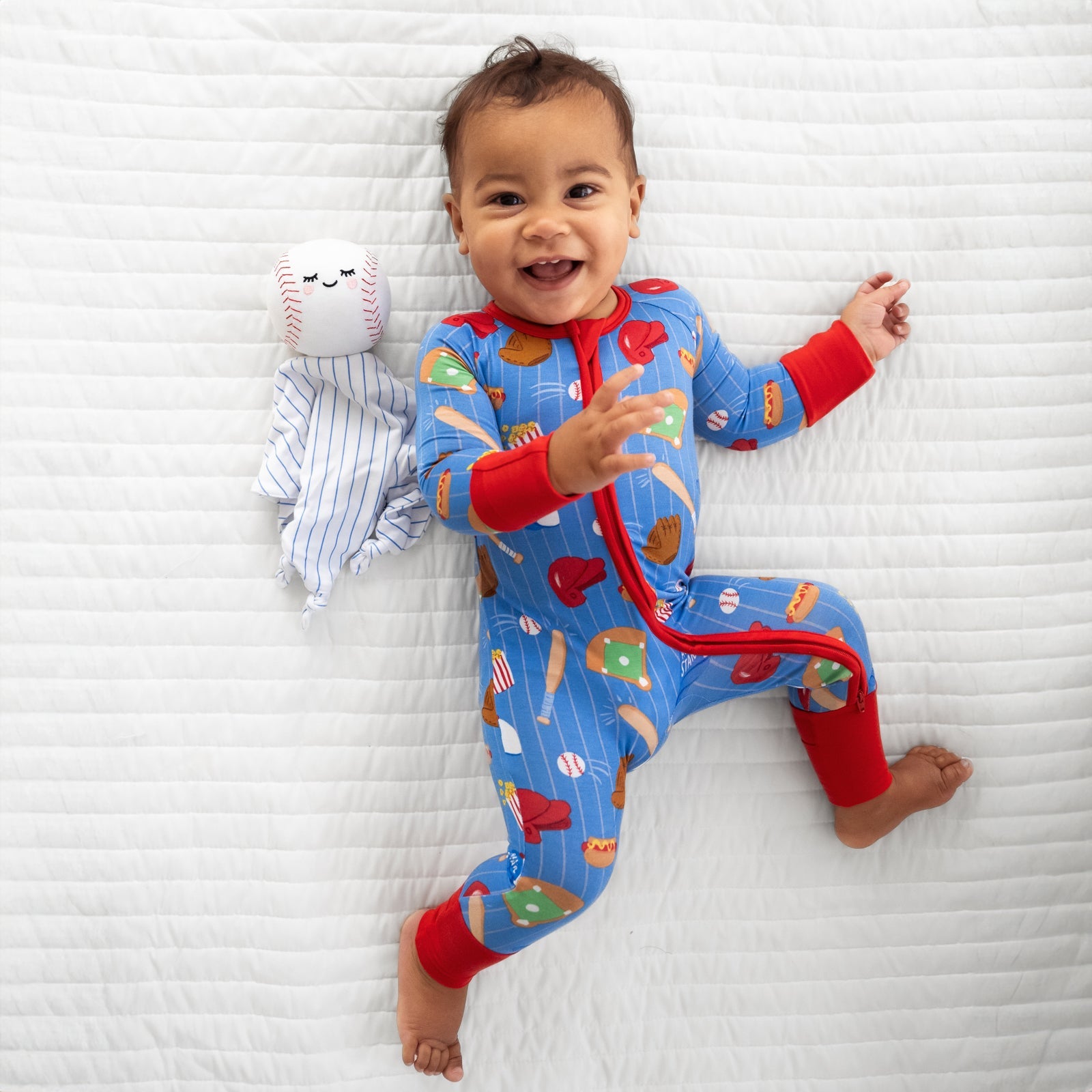 Step up to the plate with Major the Baseball Lovey, the perfect cuddly companion for your MVP! Designed for comfort with a blanket crafted from our signature bamboo viscose fabric, Major is perfect for all the snuggles, whether at home or on the go. With an adorable plush baseball top, this Lovey is not just a bedtime buddy, but also a fun companion for your little one’s imaginative adventures. Major the Baseball is here to catch every smile and make your little slugger feel like a champion!