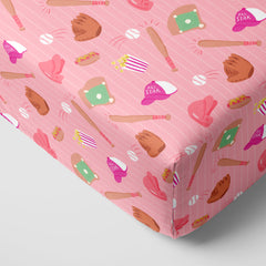 Tuck your baby in for dreams of future grand slams on these cute baseball sheets! Featuring an all-over print of gloves, bats, baseballs, and more, these sheets are made from our signature Lunaluxe® Bamboo to keep your little one cool during summer nights and cozy through winter. Perfect for adding a sporty spin to your newborn’s nursery, and for the sweetest photo-ops when paired with our Pink All Stars Zippy!