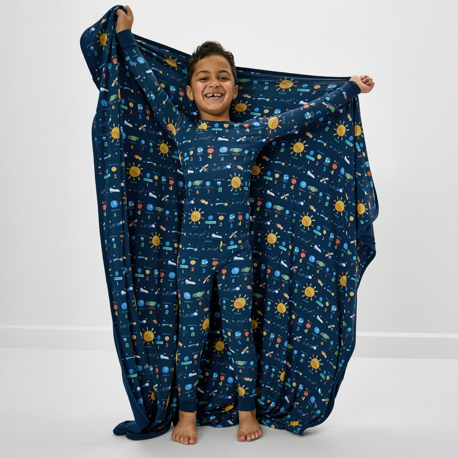 Cosmic cuddles, here we come! The Solar Explorers Large Cloud Blanket® features solar system wonders your little learner will love. Made from triple-layered Lunaluxe® Bamboo that's gentle on sensitive skin, this bamboo blanket is perfect for after-school space lessons and story time. Grab matching jammies to make together-time more special!