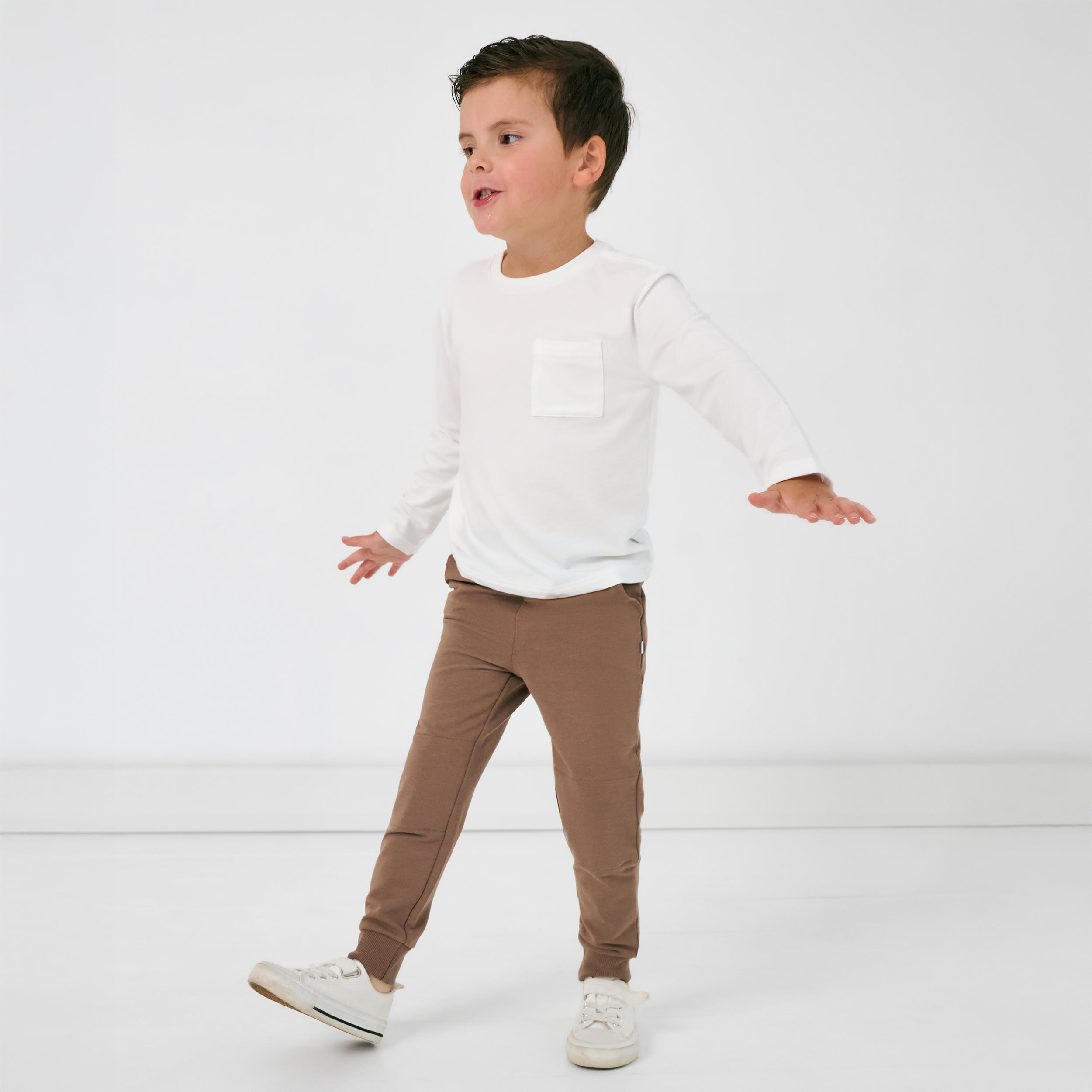 Made from super soft & durable Soluxe® Bamboo, these trendy Vintage Brown Joggers will be their new go-to! Deep pockets are perfect for storing treasures, while stretchy cuffs stay put at the playground. Complete the look with your fave LS Sweatshirt.