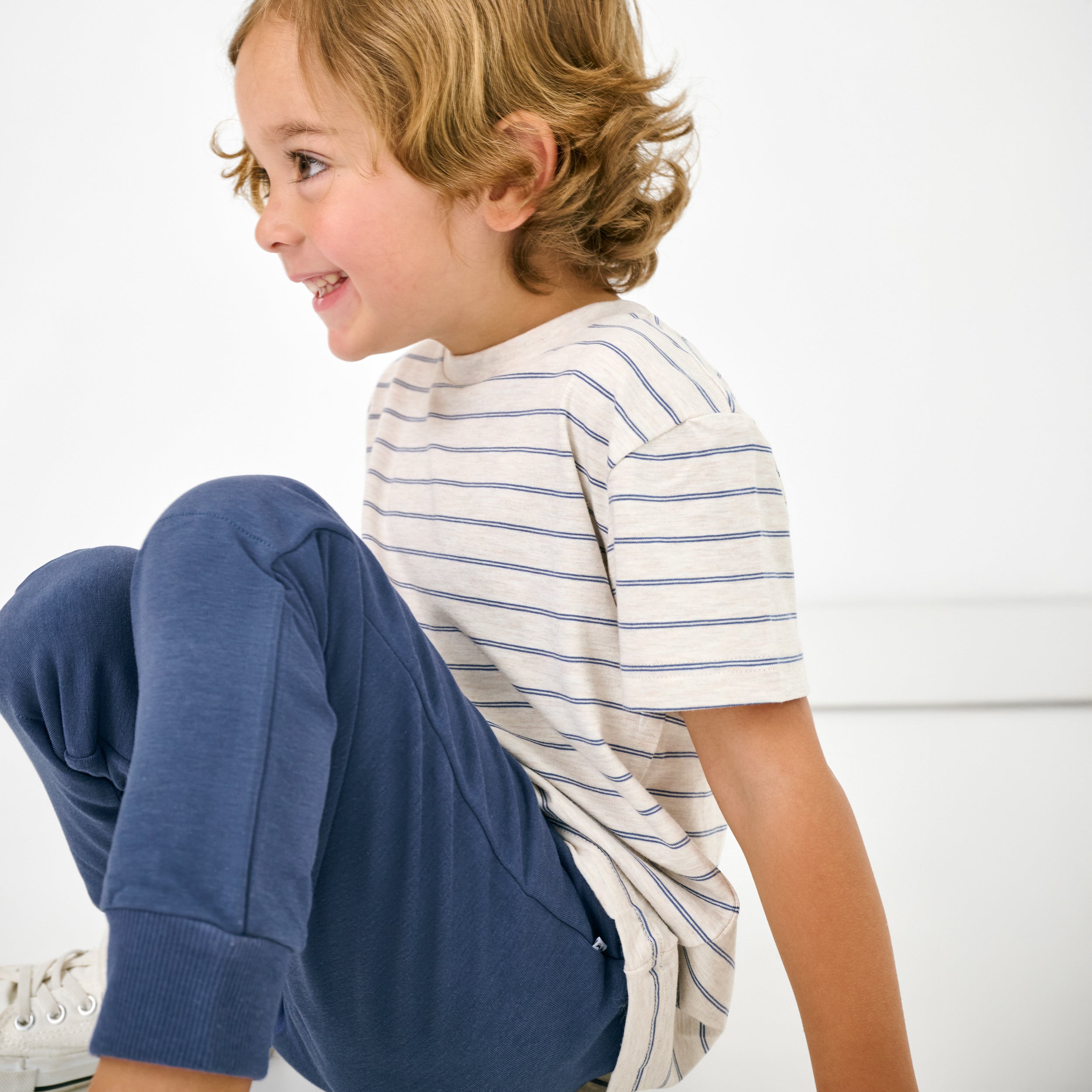 Made from super soft & durable Soluxe® Bamboo, these comfy Vintage Navy Joggers will be their new go-to! Deep pockets are perfect for storing treasures, while stretchy cuffs stay put at the playground. Add your fave tee and zip hoodie for a cool-kid 'fit!